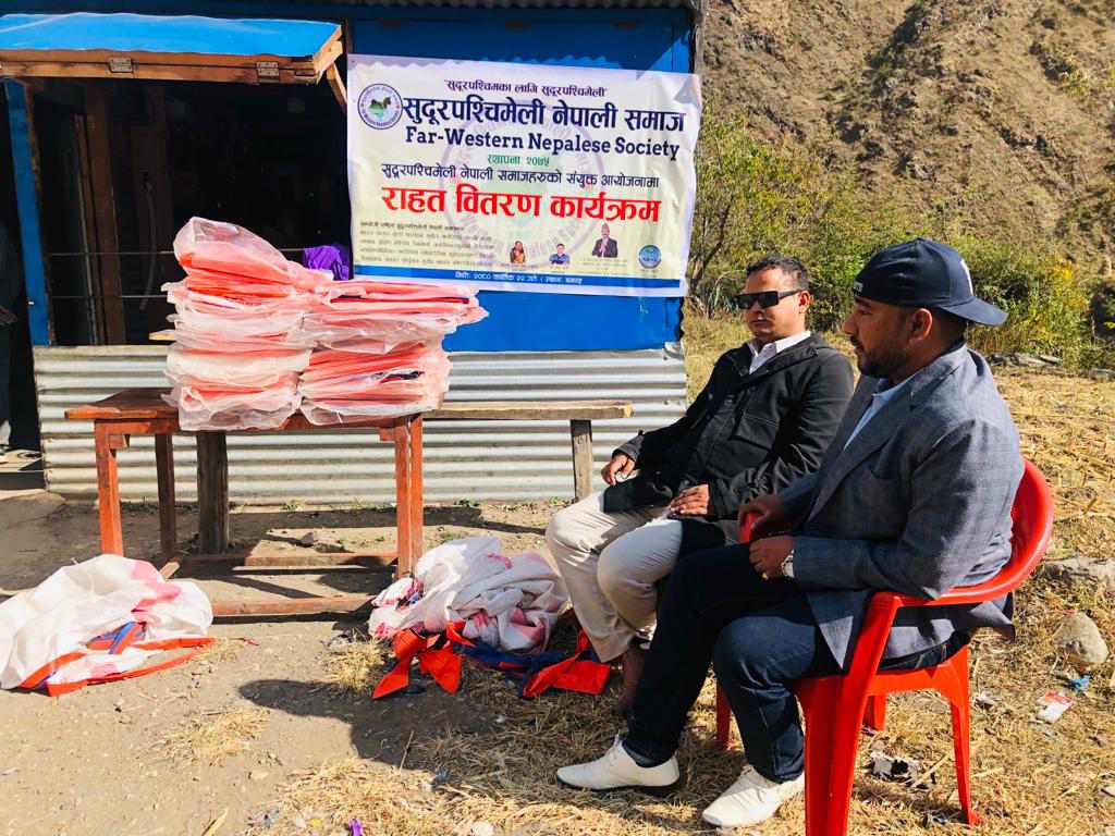 सुदूरपश्चिमेली नेपाली समाजले बझाङका भूकम्पपीडितहरुलाई राहत सामग्री वितरण गरेको छ। त्यहाका करिब २१२ घरपरिवारलाइ राहत वितरण गरिएकाे हाे।